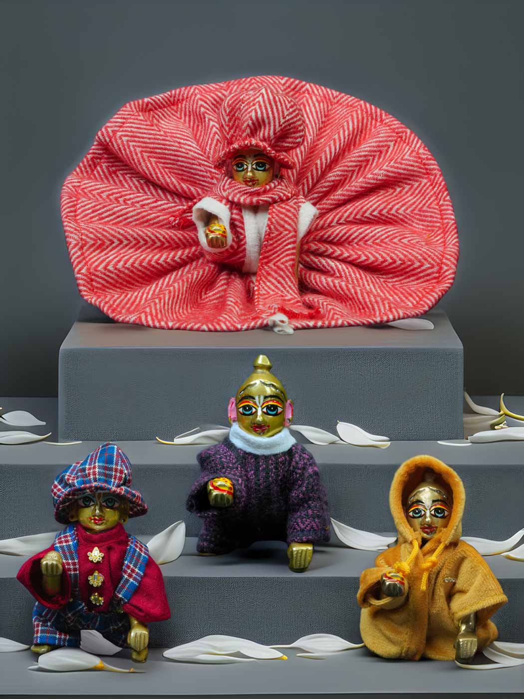 All dresses are made using soft, winter-friendly fabrics, ensuring ease of wear and uninterrupted seva. Crafted with love and devotion, this combo is ideal for devotees who prefer simple, daily winter dressing for their Laddu Gopal Ji.